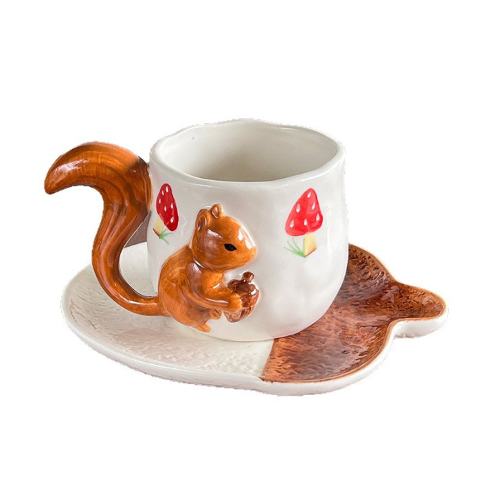 可愛高顔值馬克杯浮雕松鼠陶瓷杯創意杯子早餐牛奶杯咖啡杯