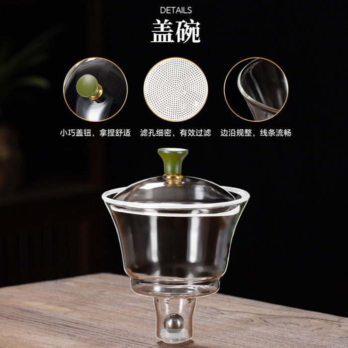 玻璃自動茶具熊貓帶六君子泡茶器-+公道盃+6盃