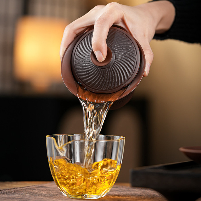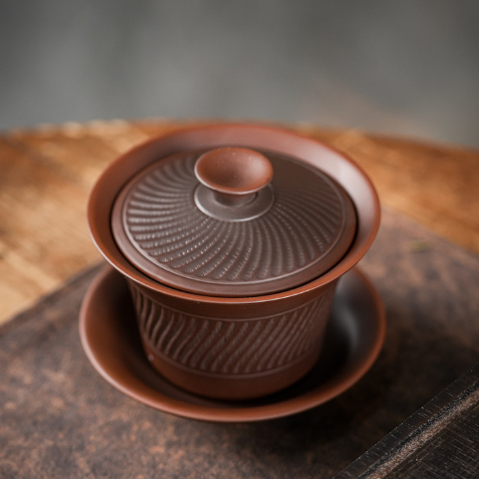 紫陶跳刀懸停三才蓋碗全手工功夫茶具茶碗家用紫砂大號單個泡茶碗