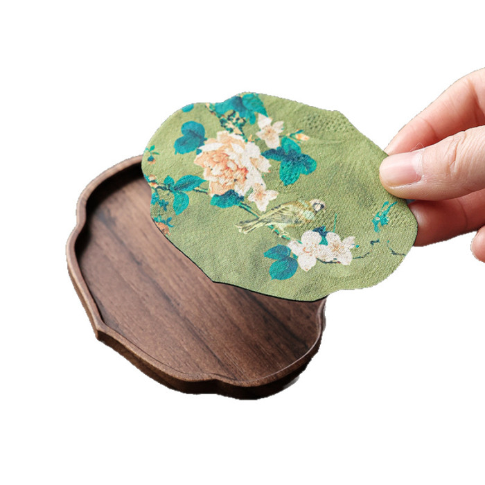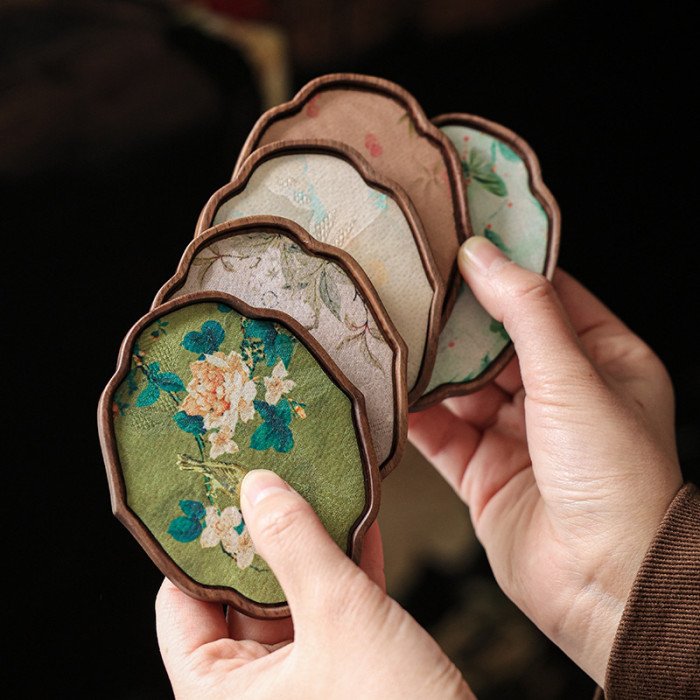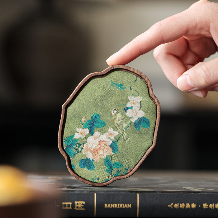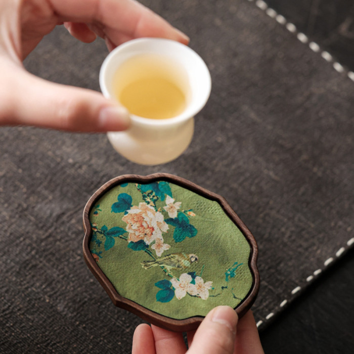 胡桃木雲紗杯墊茶托布藝隔熱防燙木質隔熱墊耐熱功夫茶托茶墊底座