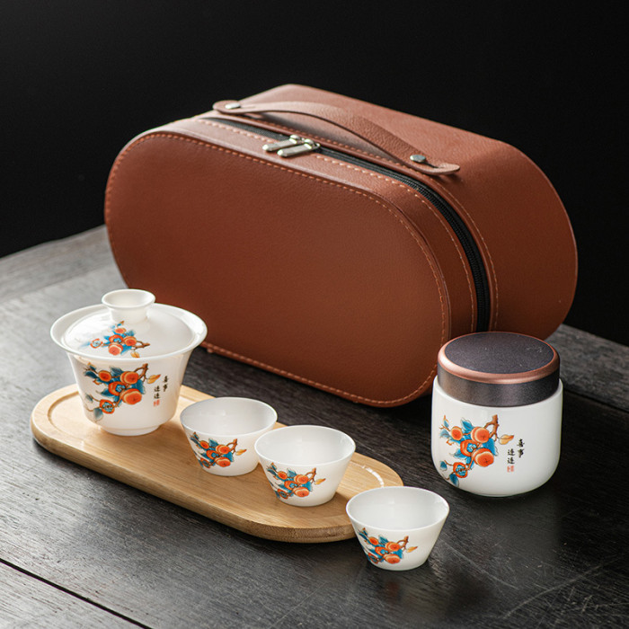 羊脂玉白瓷旅行功夫茶具套裝戶外可攜式簡約泡茶壺陶瓷茶具禮盒
