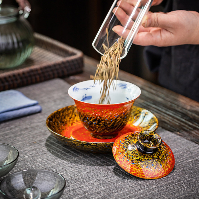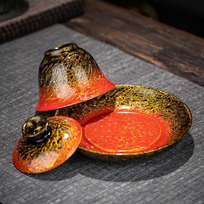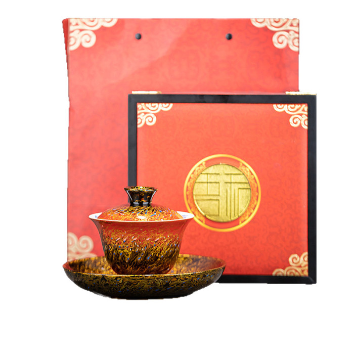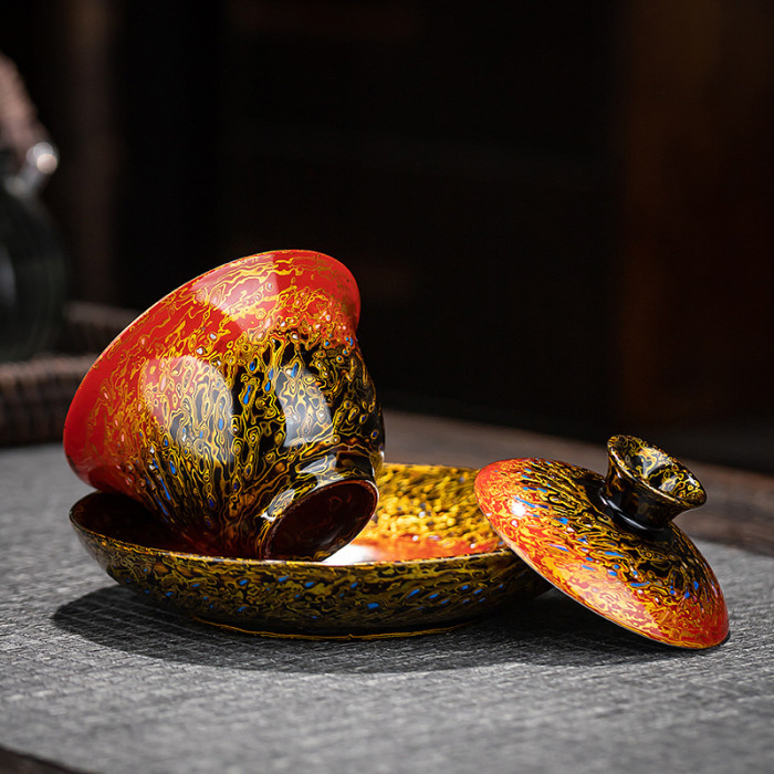 素緣漆器茶具福州大漆漸變紅螺鈿大容量不燙手三才蓋碗手繪泡茶碗