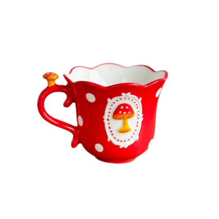 紅蘑菇高顔值咖啡杯碟套裝釉下彩陶瓷水杯花邊小清新拿鐵杯咖啡杯