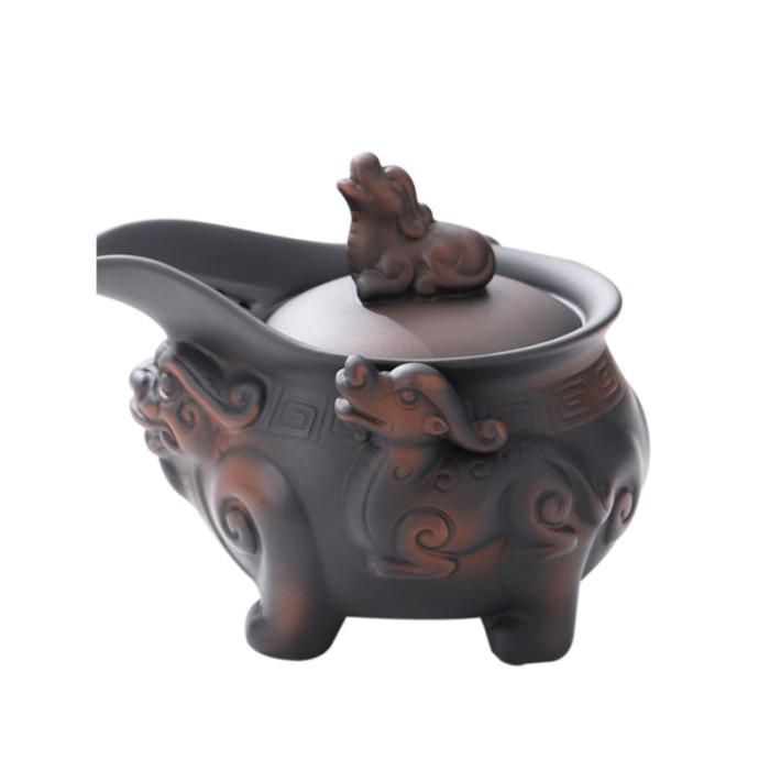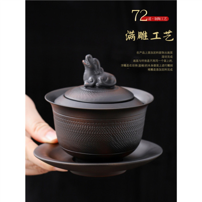 規格 | 紫陶堆雕-跳刀麒麟三才蓋碗 |