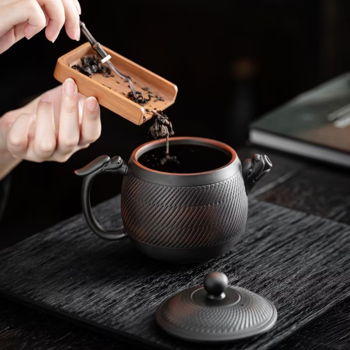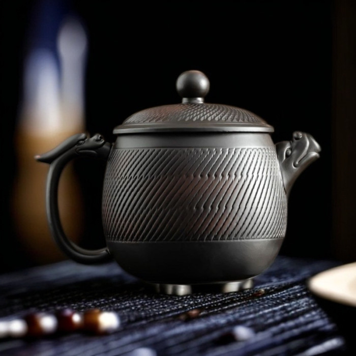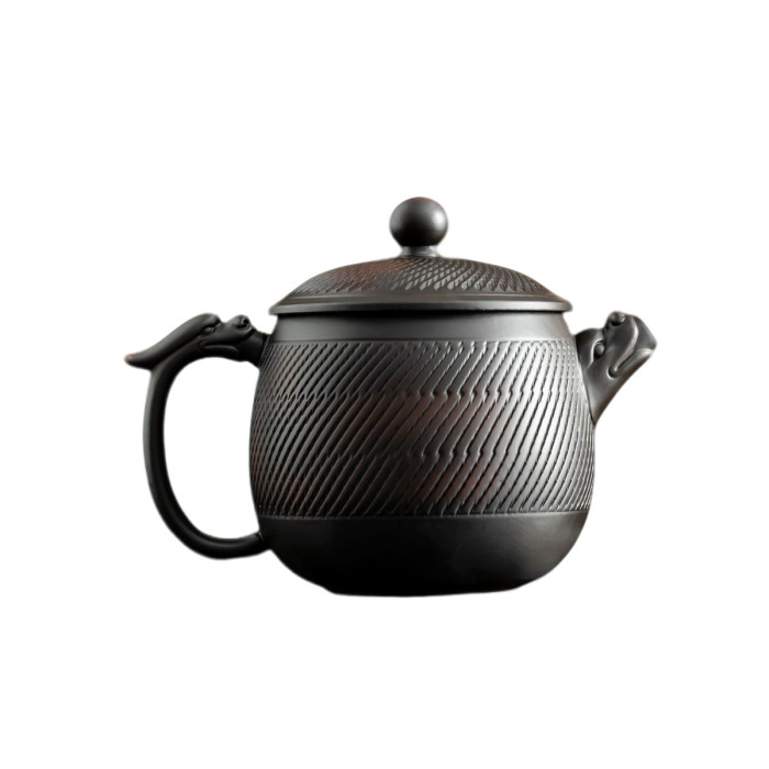 原礦紫陶茶壺手工雕刻龍把秦權壺大容量大寬口龍頭復古家用泡茶壺