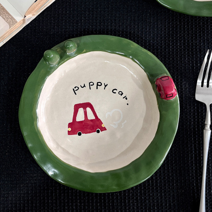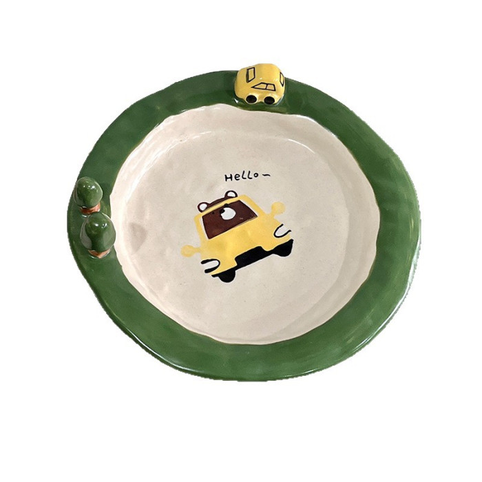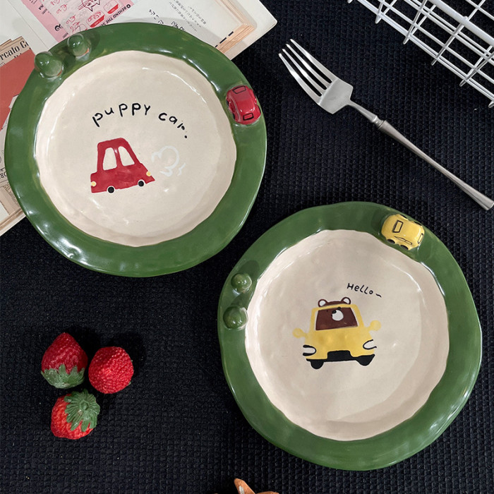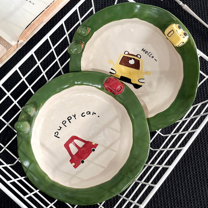 釉下彩手繪餐具可愛手捏盤童趣手作沙拉盤水果早餐甜品碗高顔值