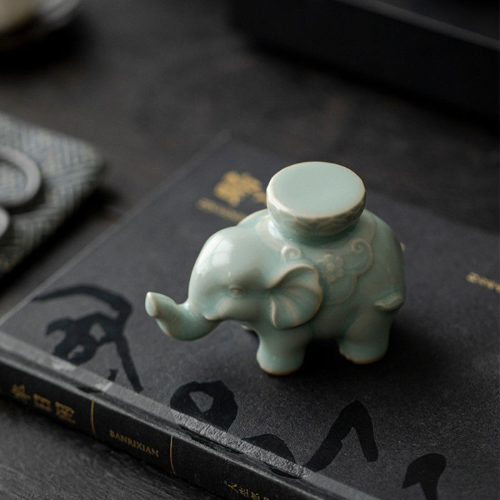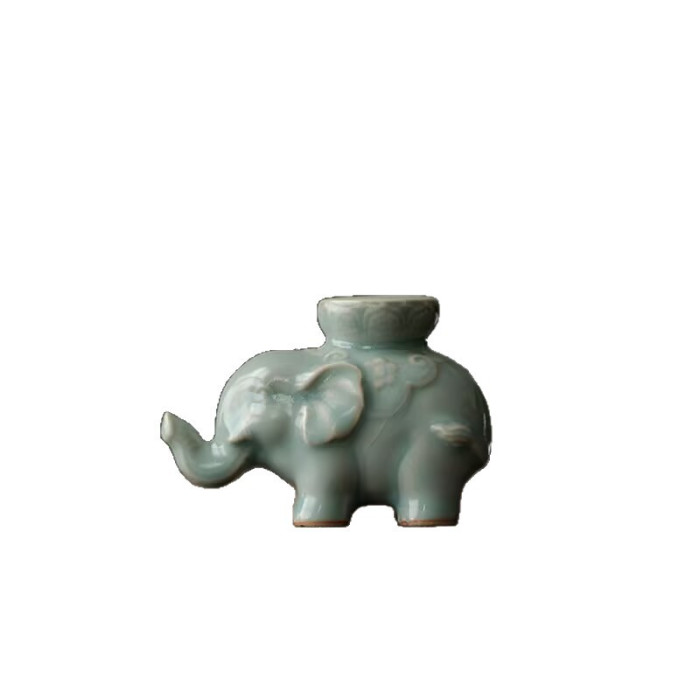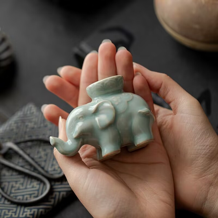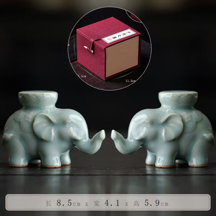 汝窰吉象蓋置茶寵茶台家用手工茶器擺件蓋碗紫砂壺蓋托小象禮物