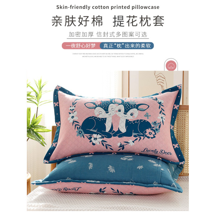 純棉紗布枕套一對裝全棉加大加厚高級柔軟吸汗家用透氣成人枕頭套