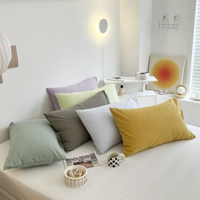 純棉全棉枕套枕頭套子48×74cm純色撞色小清新單人一對裝單件學生