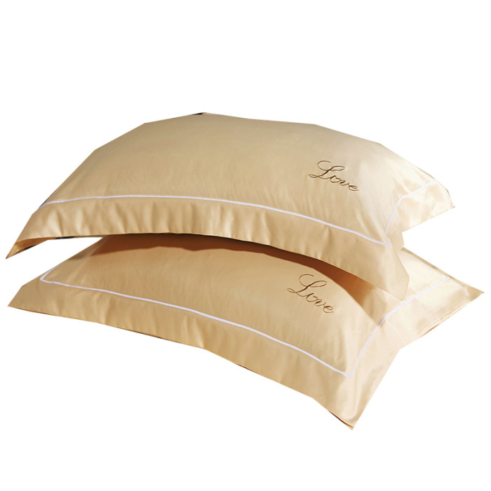 米黃色奢華高品質水洗真絲枕套 簡約純色冰絲枕頭套一對裝48*74cm