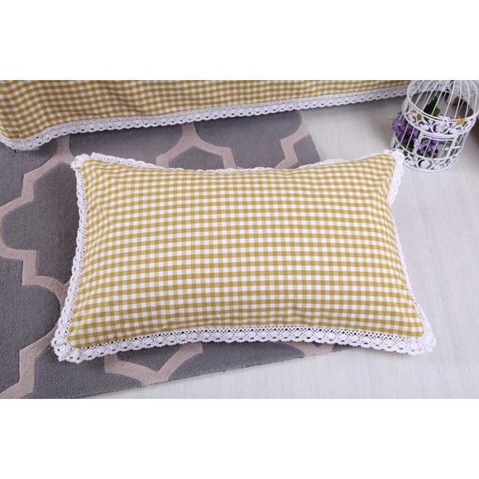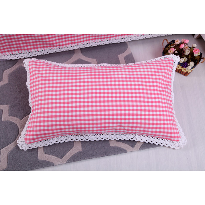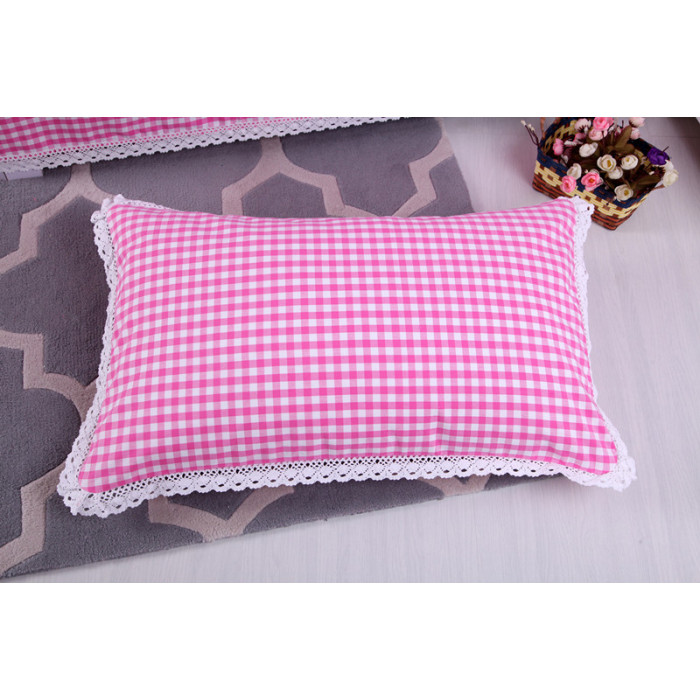 精梳純棉粗布枕套 格子花邊大童枕成人枕頭套一對裝 耐洗學生單人