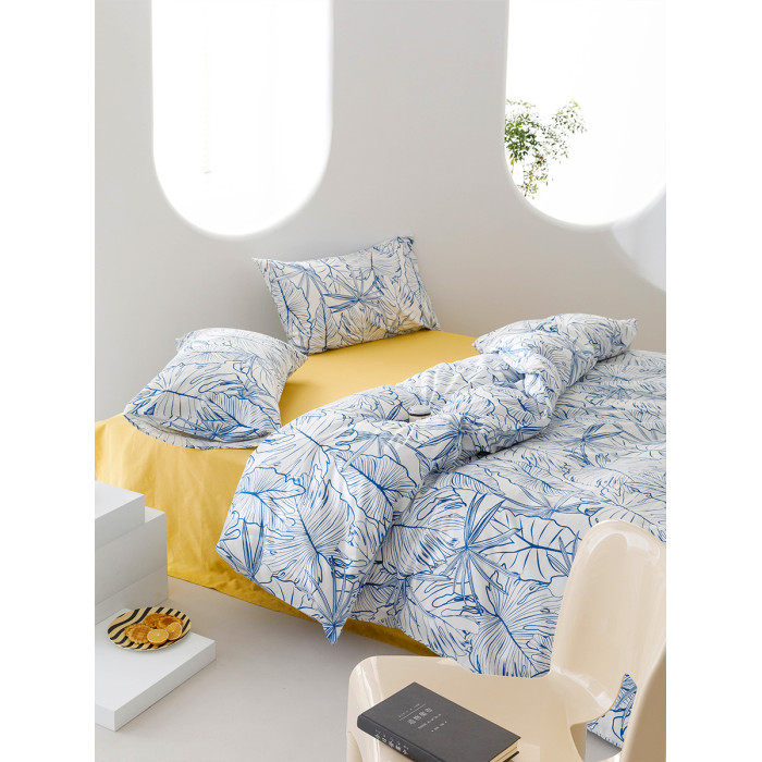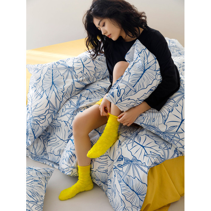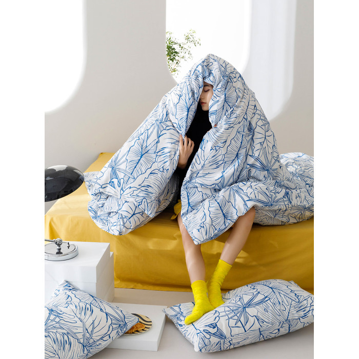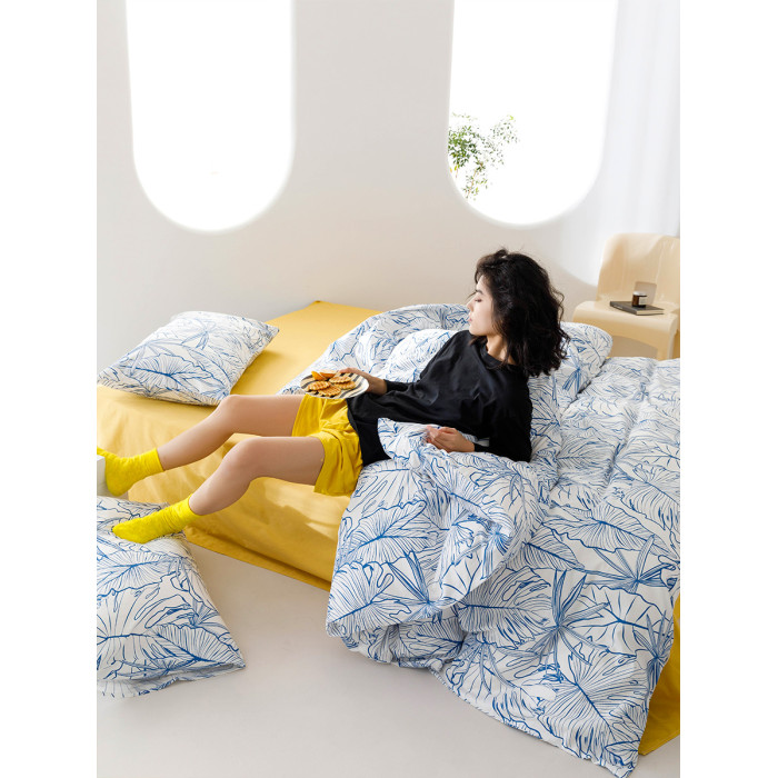 田園風藍色葉子純棉被套單件手繪小清新全棉床上三四件套雙人被罩