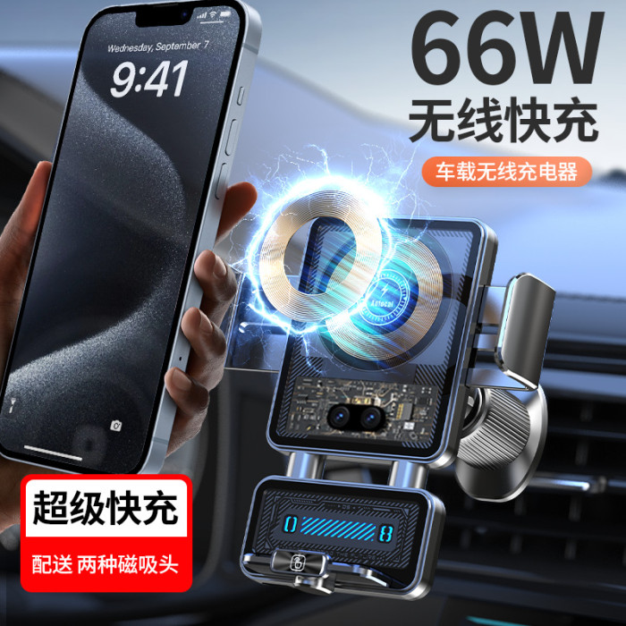 出風口車用無線充支架 卡扣式導航車用支架66W紅外線感應無線閃充