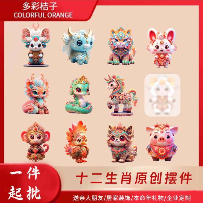 國潮十二生肖桌面車用擺件蛇年吉祥物創意節日禮物年會活動禮品