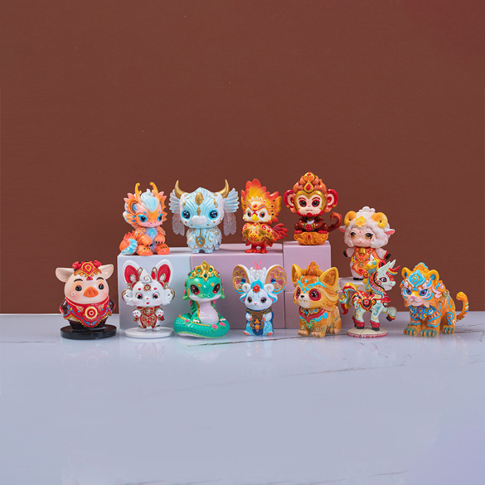蛇年吉祥物擺件國潮十二生肖彩色創意禮品手辦桌面家居車用擺件