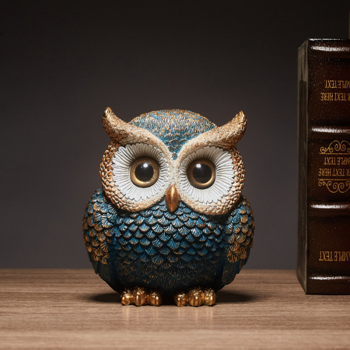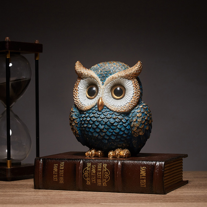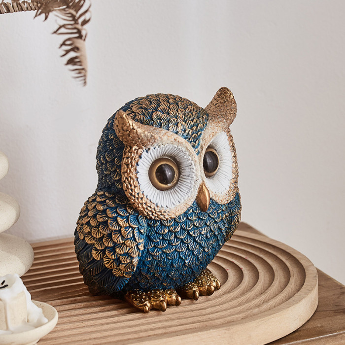 美式復古貓頭鷹桌面小擺件電視櫃酒櫃裝飾樹脂工藝品喬遷禮物