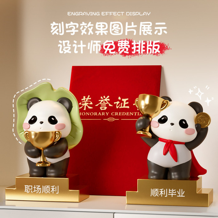 可愛創意熊貓獎杯學生年會比賽頒獎禮物可刻字桌面擺件教師節開學