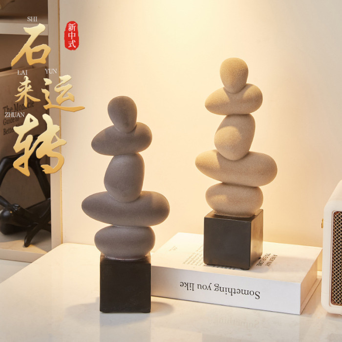 石來運轉新中式簡約辦公室酒櫃客廳裝飾品喬遷新居禮物工藝品擺件