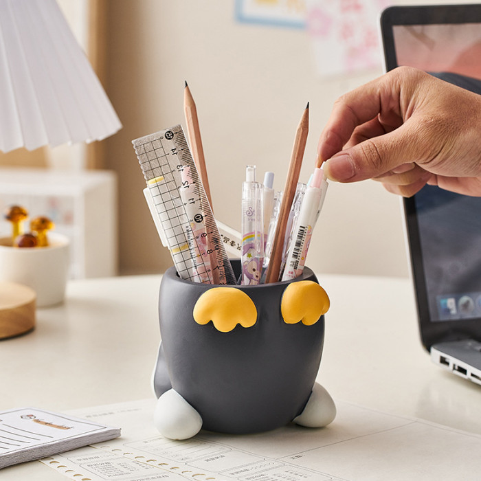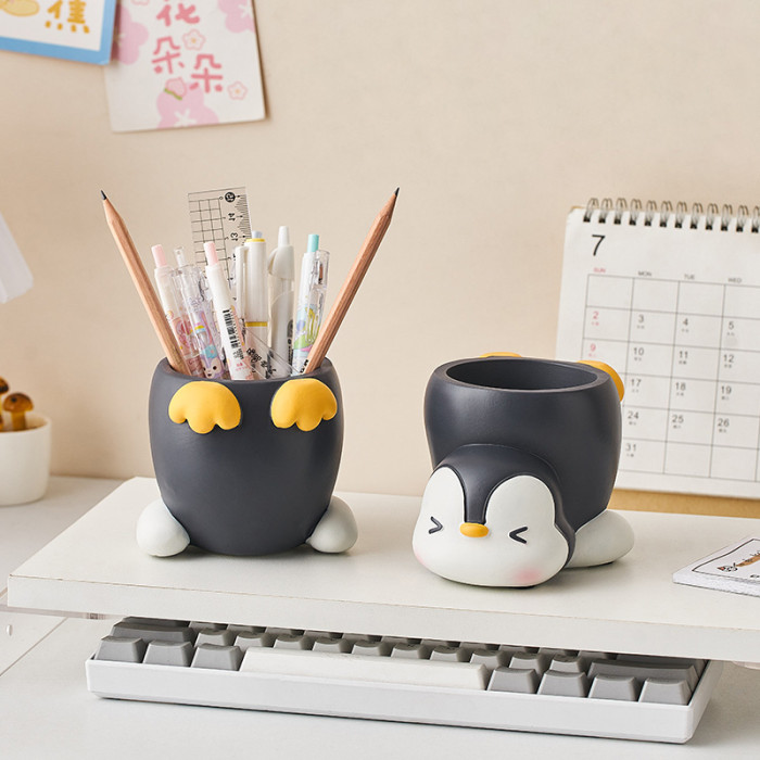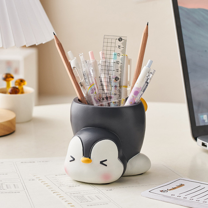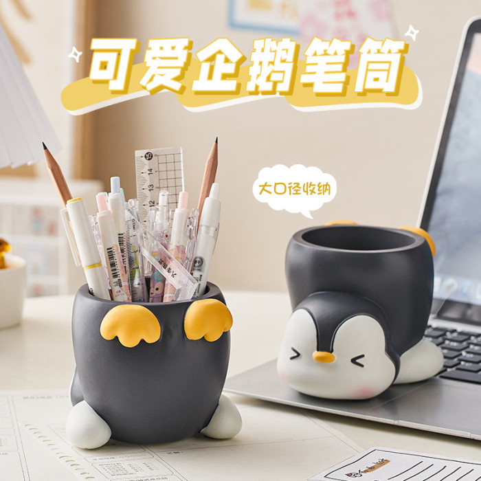 創意企鵞辦公室工位書桌裝飾實用桌面擺件學生活動禮品筆筒教師節