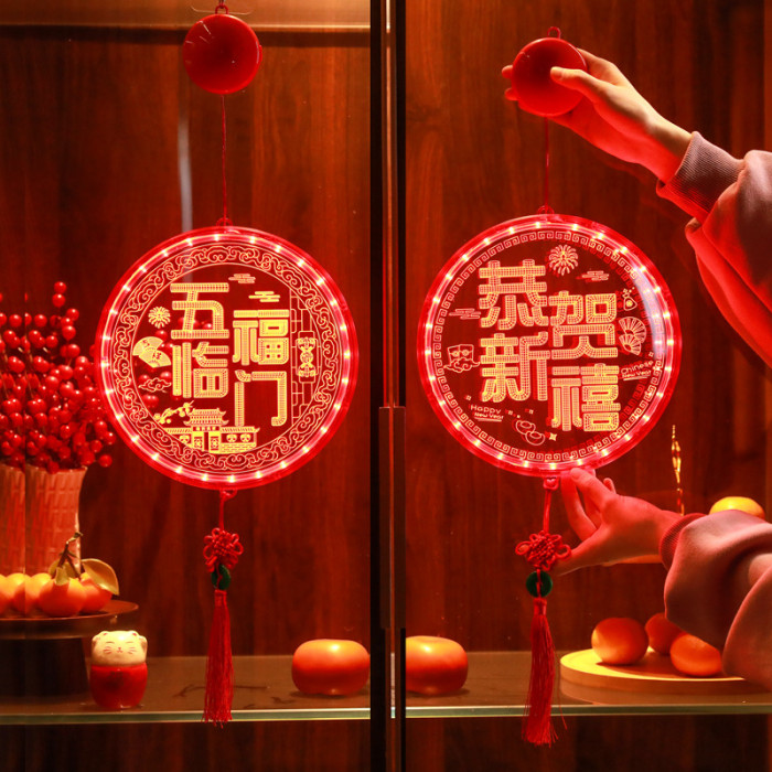 發光恭賀新禧吸盤LED彩燈掛件喬遷之喜氛圍入戶掛門上裝飾布置