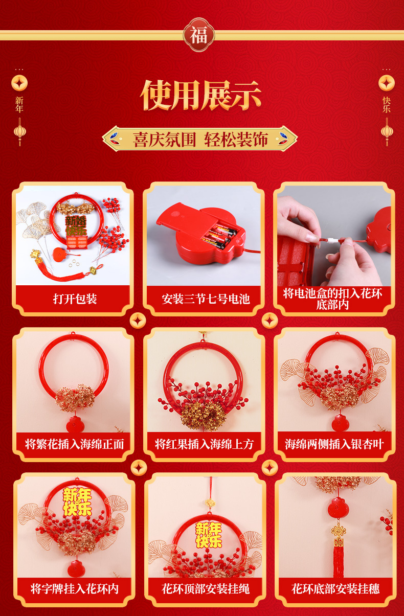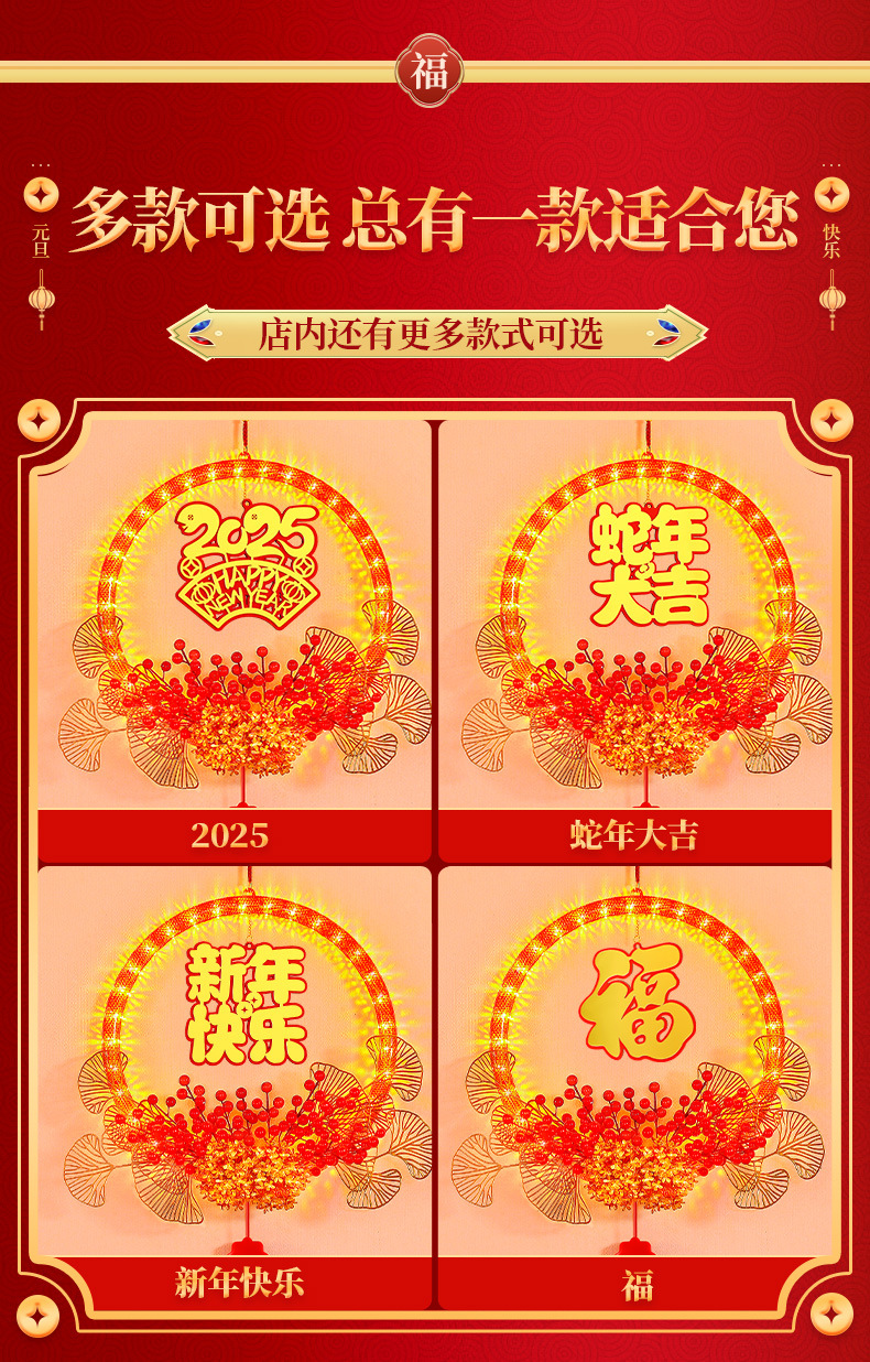 燈光顔色 | 蛇年大吉【28cm鴻運花環】 |