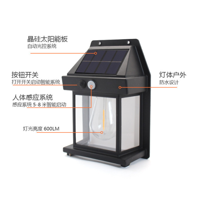 新款戶外太陽能壁燈戶外防水鎢絲燈感應庭院燈花園別墅小夜燈照明