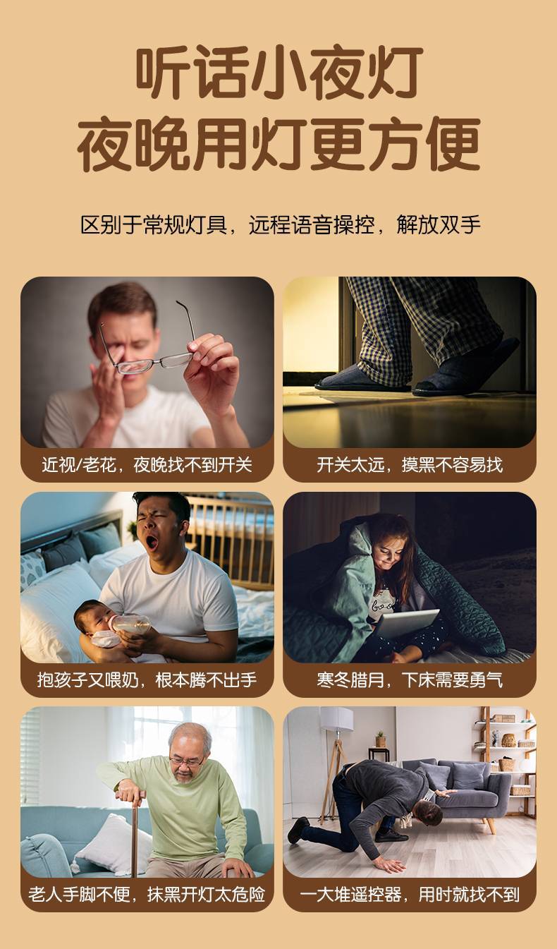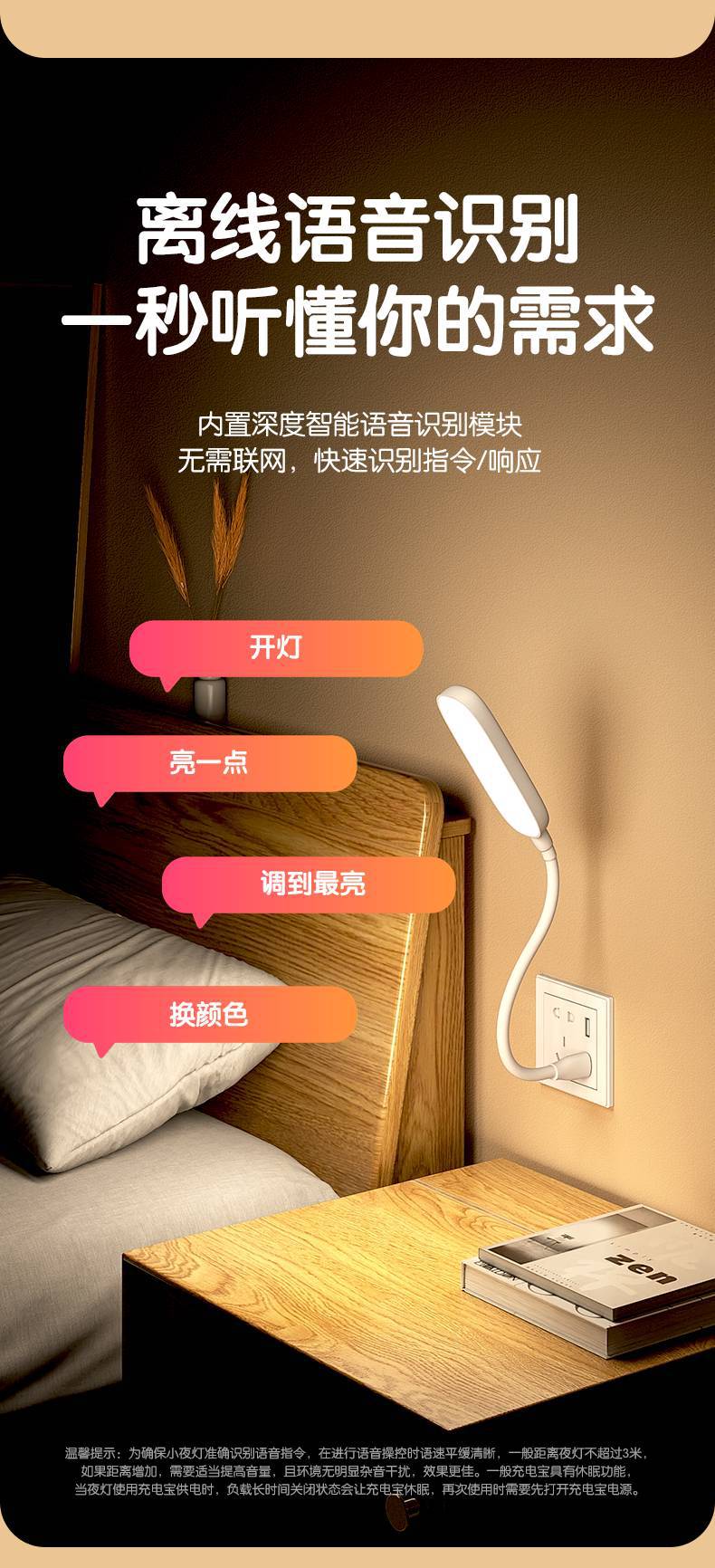 品勝人工語音控製智能USB小夜燈LED聲控感應燈兒童睡眠臥室宿舍床