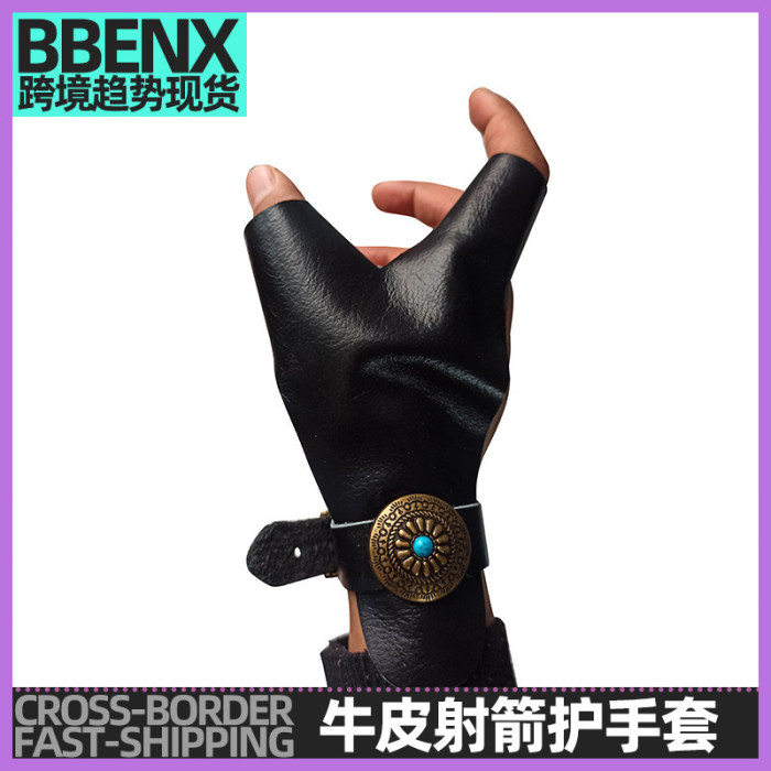 射箭護具射擊牛皮護手傳統射箭護具射箭護手套戶外射箭手指保護套