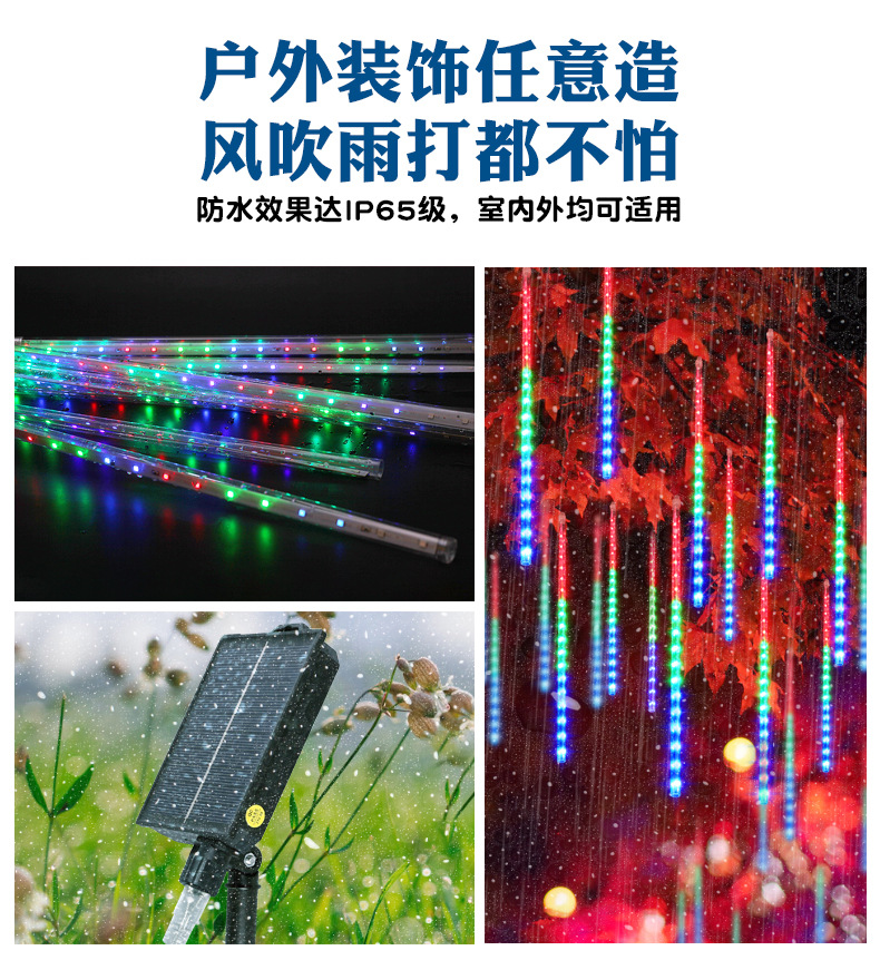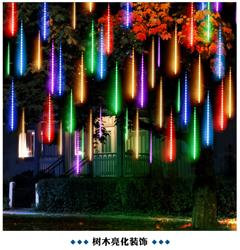 彩燈戶外用防水七彩流星雨LED燈串氛圍閃爍流水燈套裝流星燈條