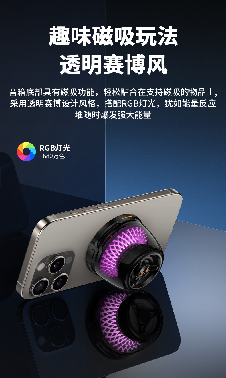 新款15W磁吸無線充電器RGB氛圍燈藍牙音箱迷你低音砲家用便捷音響
