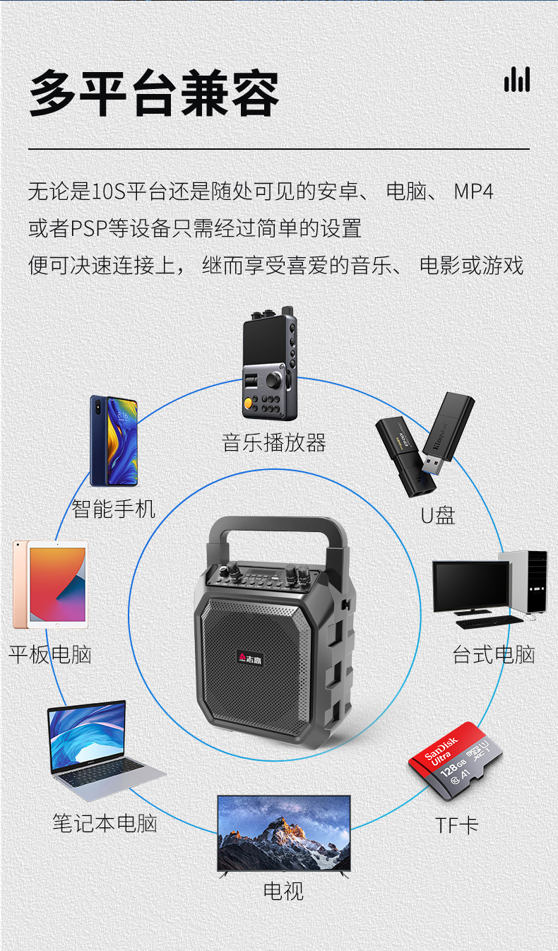 志高藍牙音箱戶外手提可攜式廣場舞音響大音量帶話筒K歌擺攤喊話