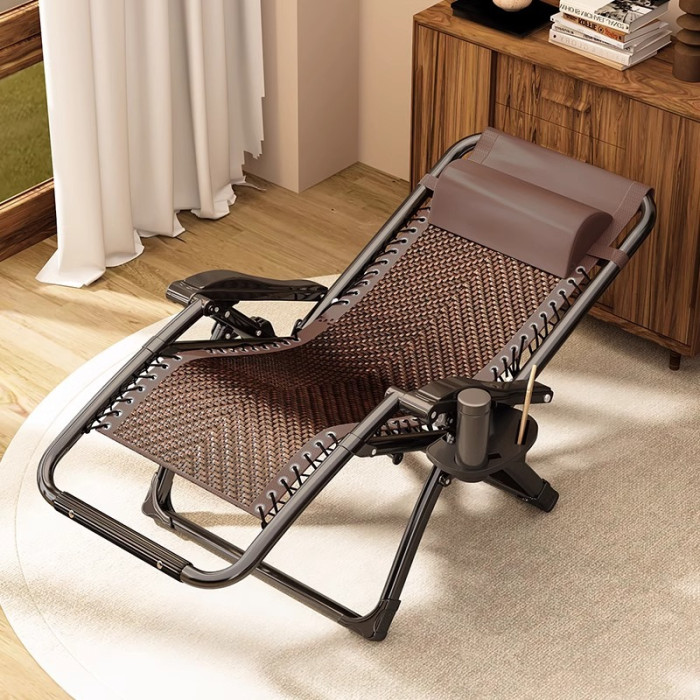 躺椅折曡午休陽台靠背午睡椅老人休閒家用可攜式辦公室坐躺兩用藤椅