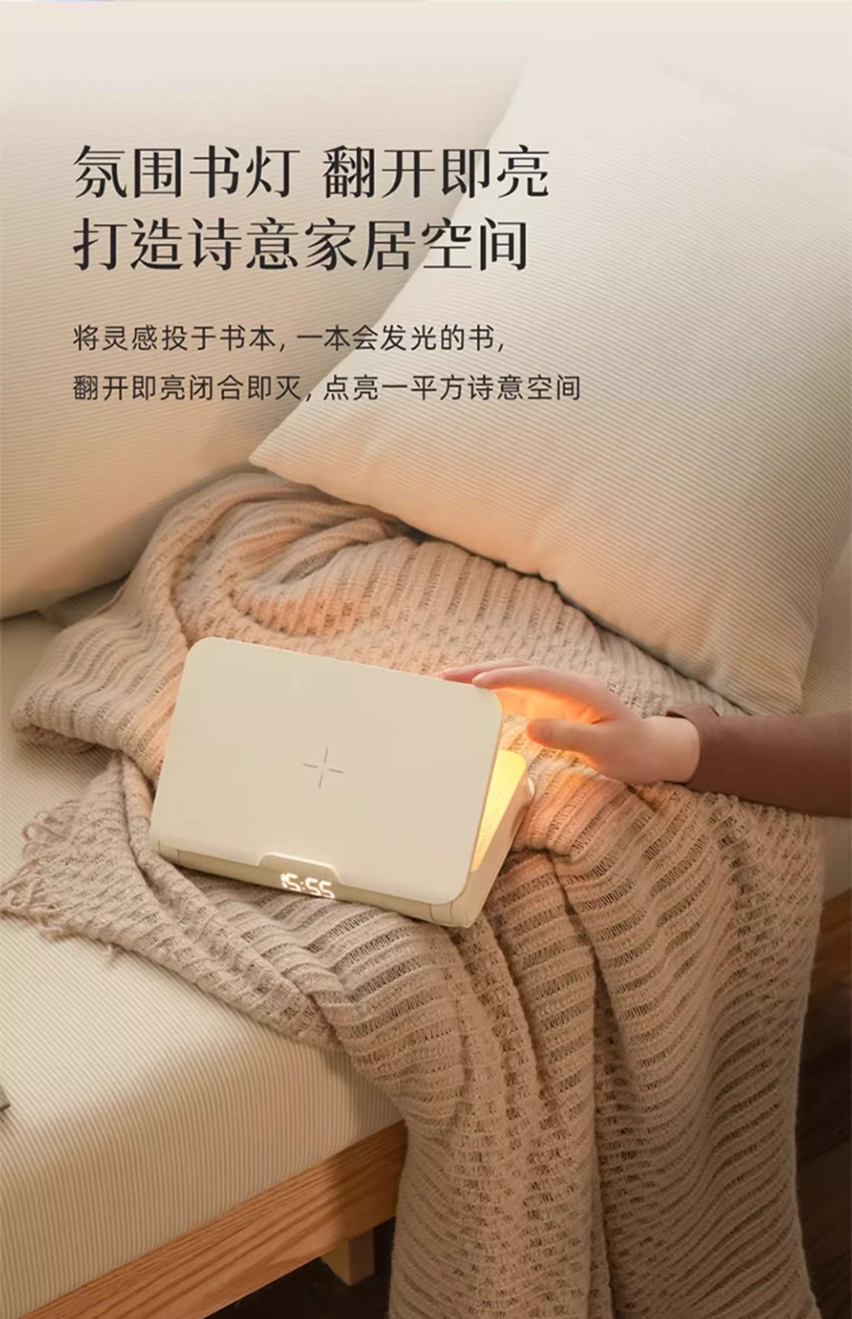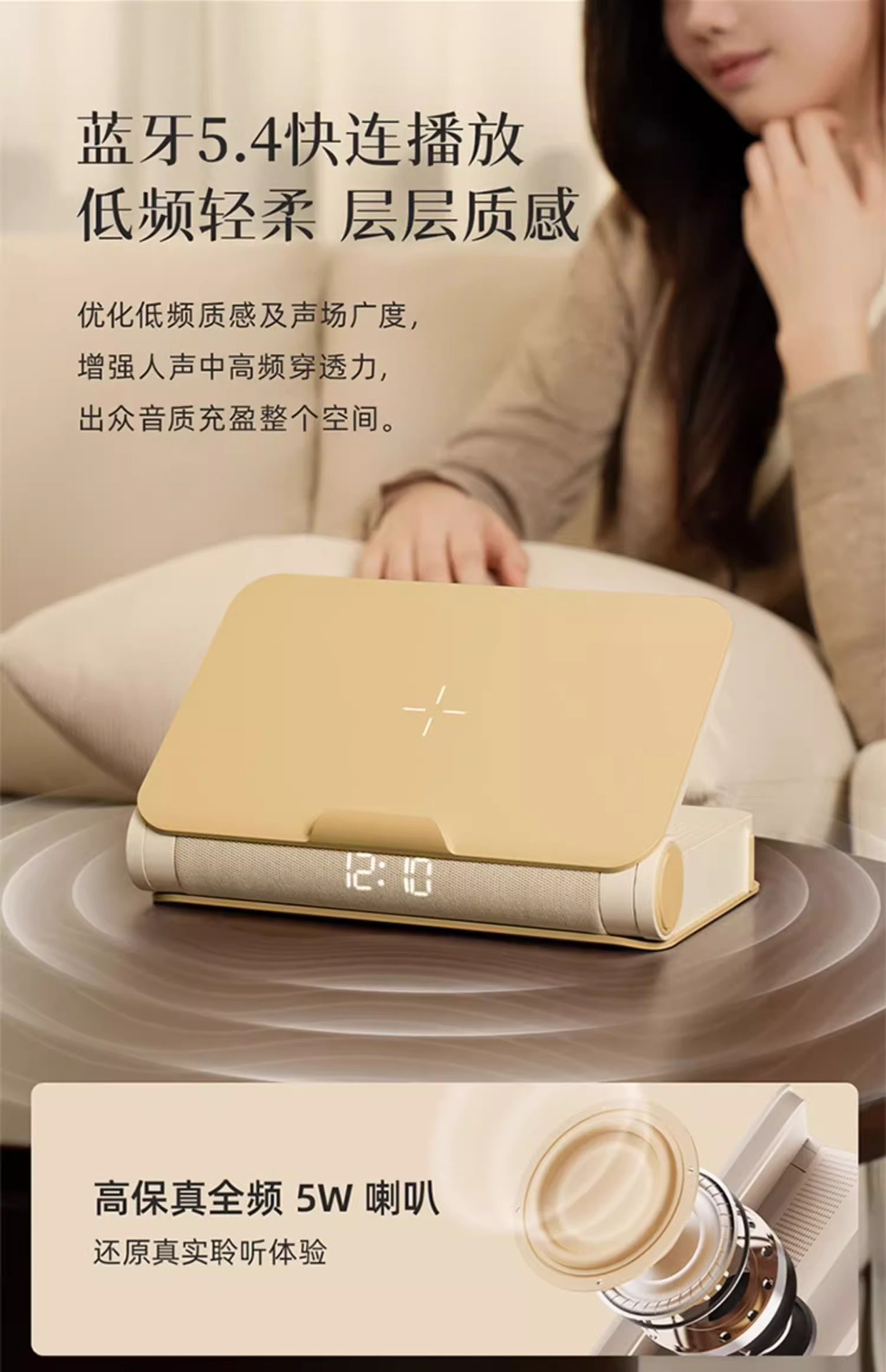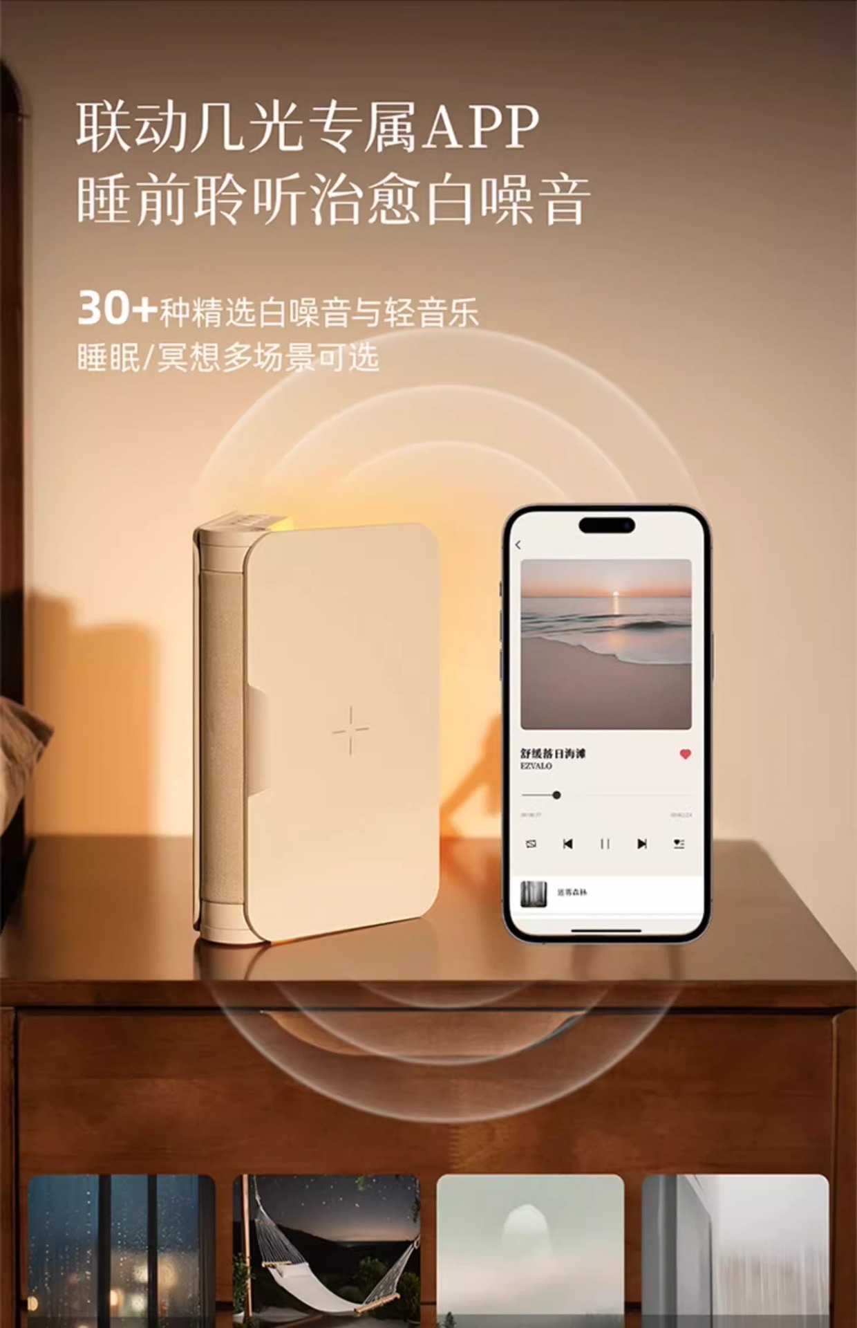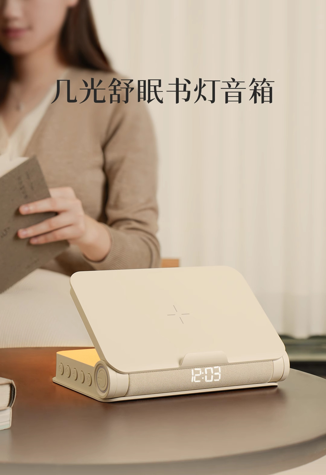 EZVALO幾光藍牙音響書燈床頭燈氛圍閙鍾無線充電時鍾白噪音小音箱