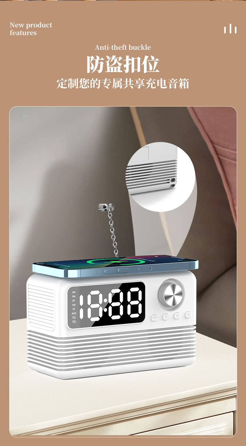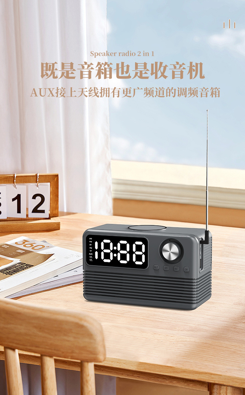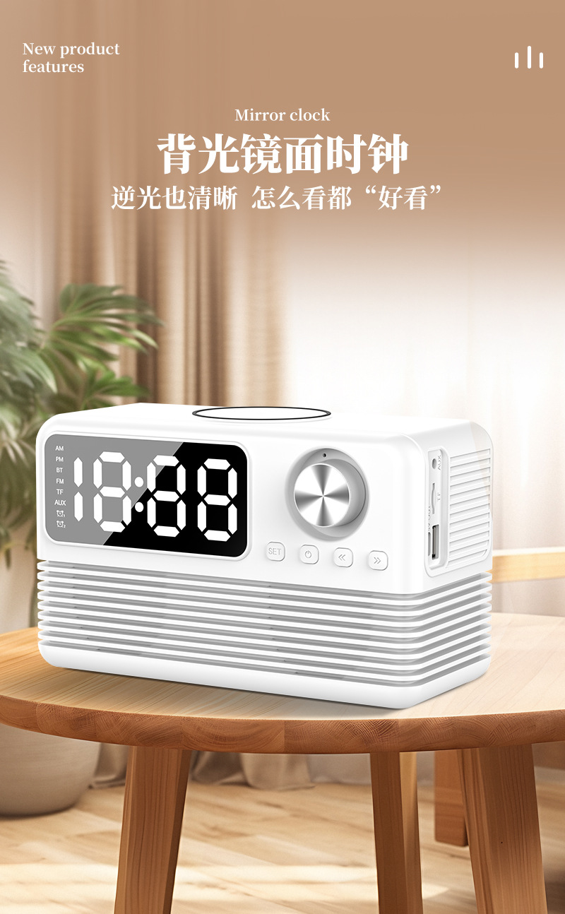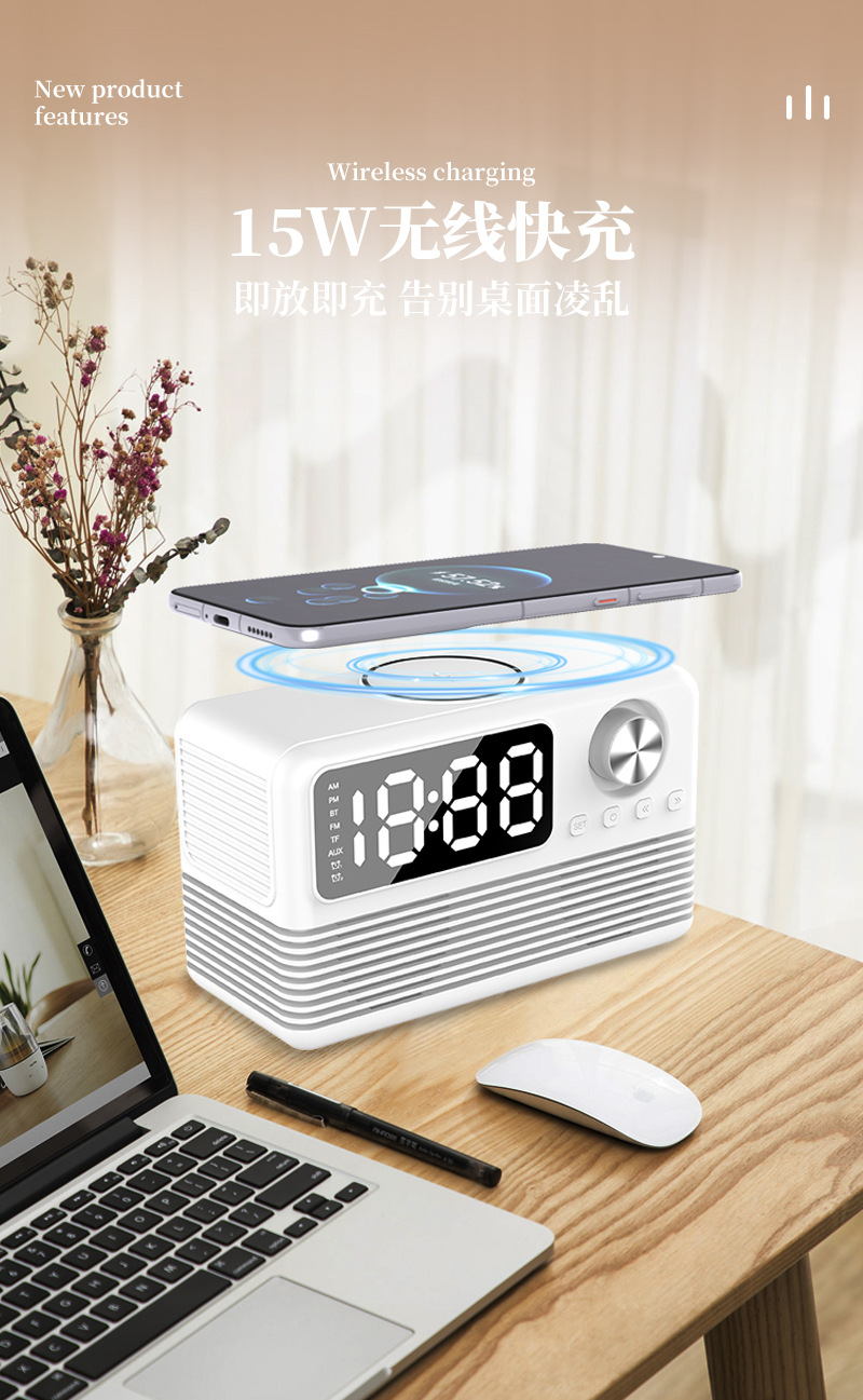 藍牙音箱15瓦無線充時鍾LED音響新款酒店用品復古無線充藍牙音響
