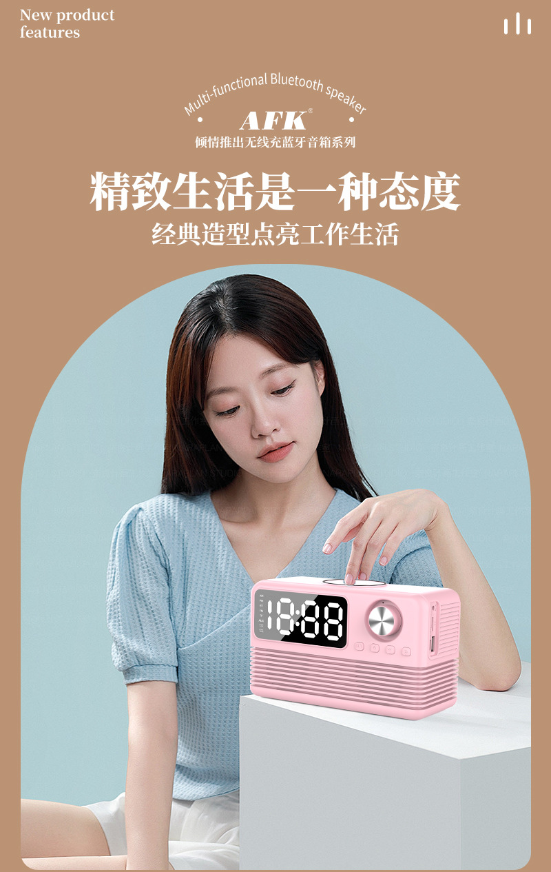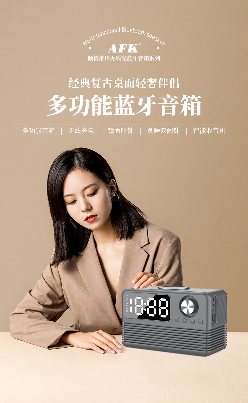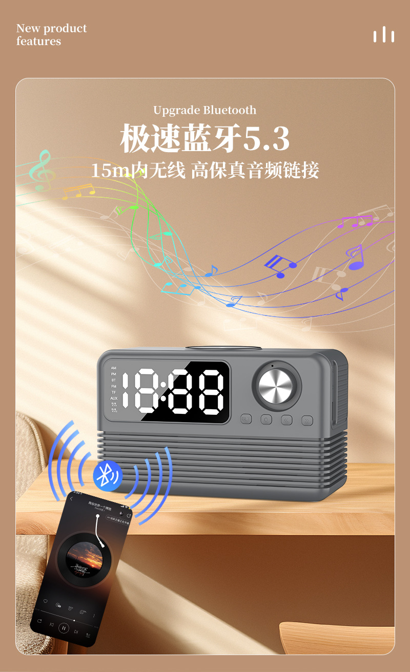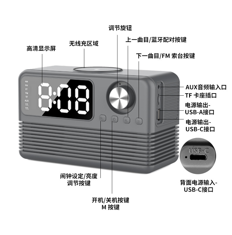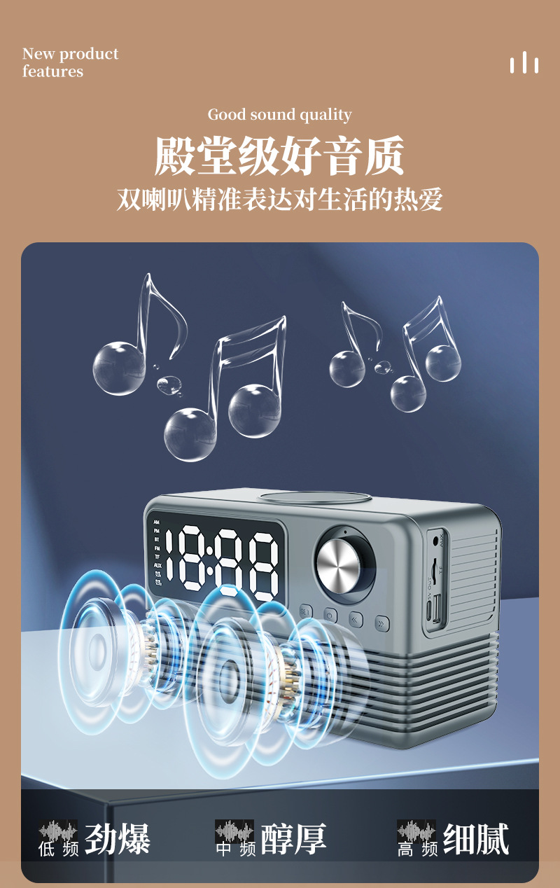 藍牙音箱15瓦無線充時鍾LED音響新款酒店用品復古無線充藍牙音響