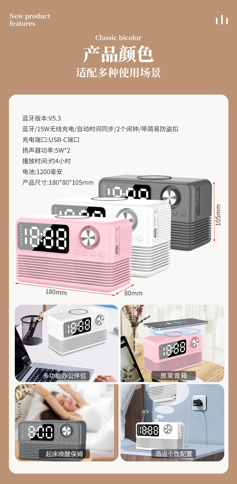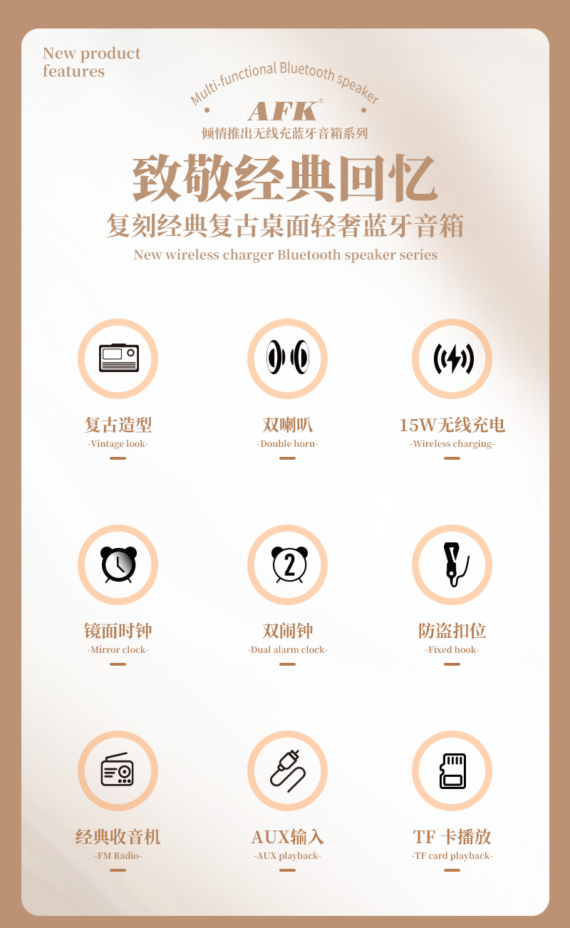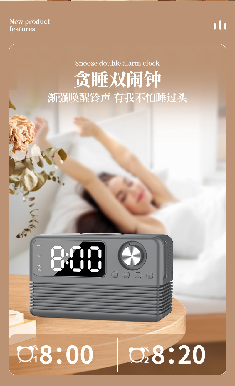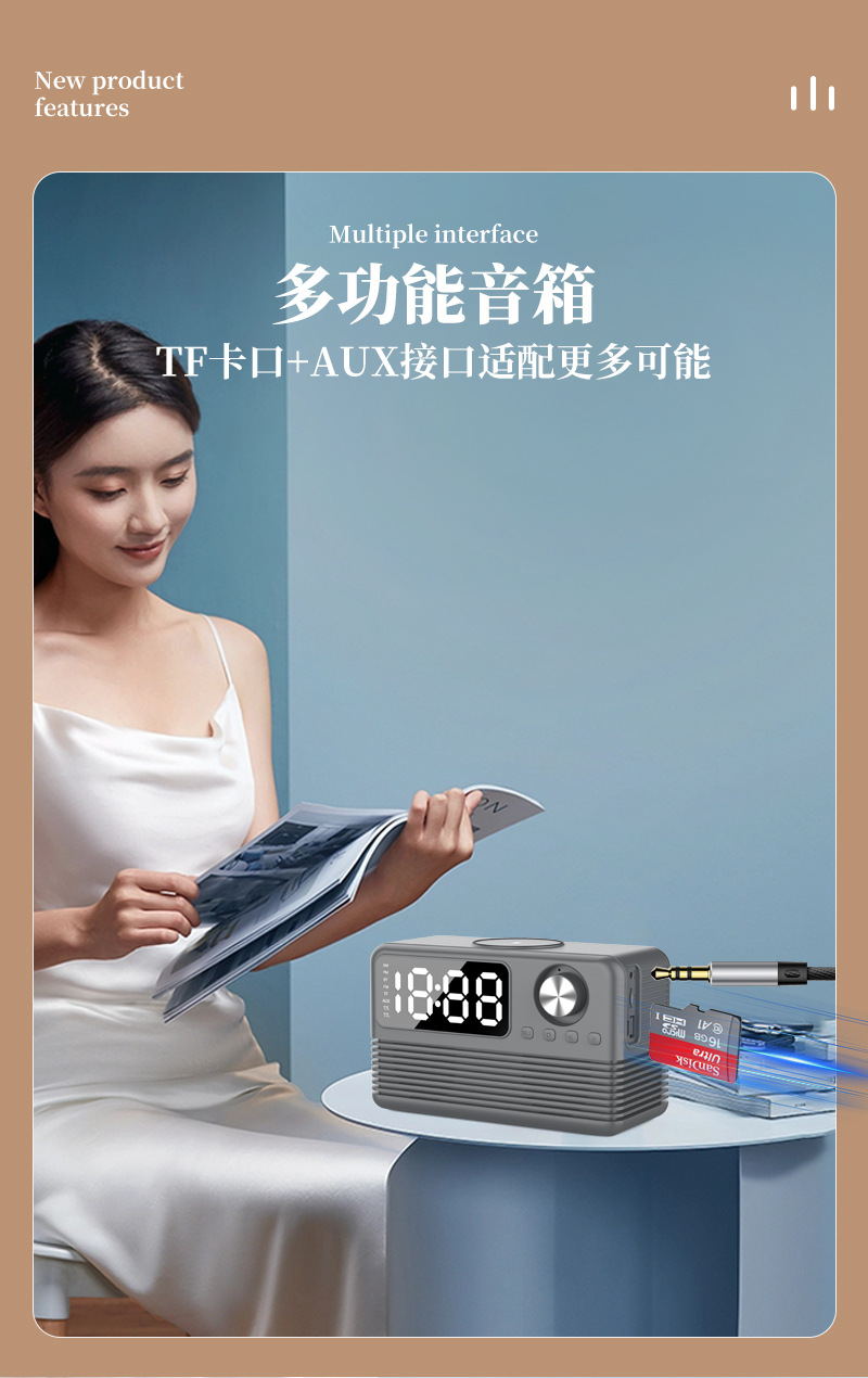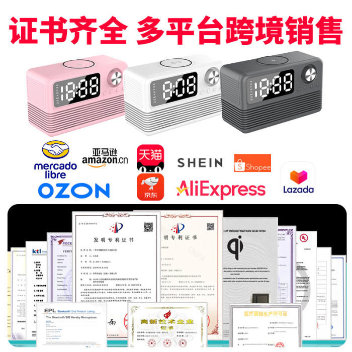 藍牙音箱15瓦無線充時鍾LED音響新款酒店用品復古無線充藍牙音響