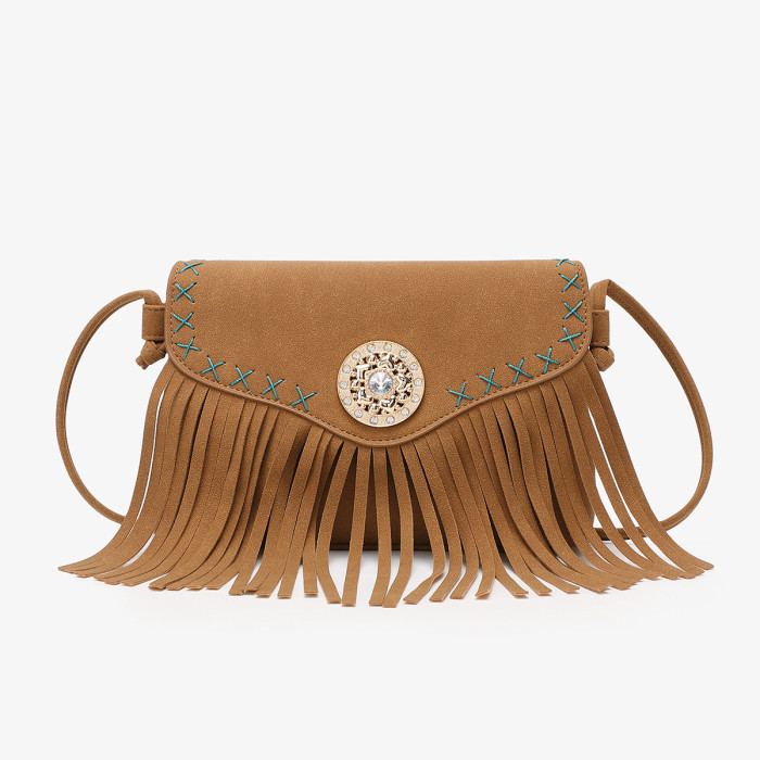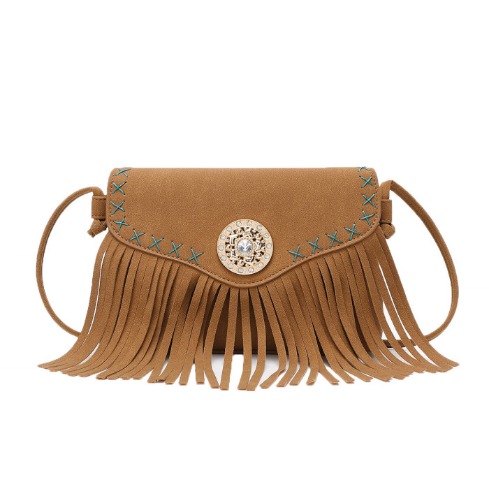 秋季新款民族風鑲鑽流蘇包復古波西米亞信封包時尚優雅女士斜後背包