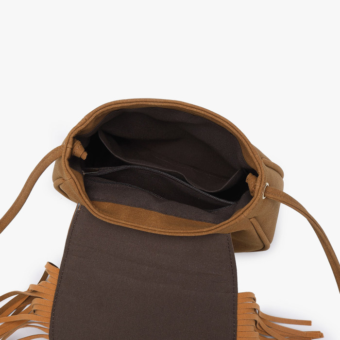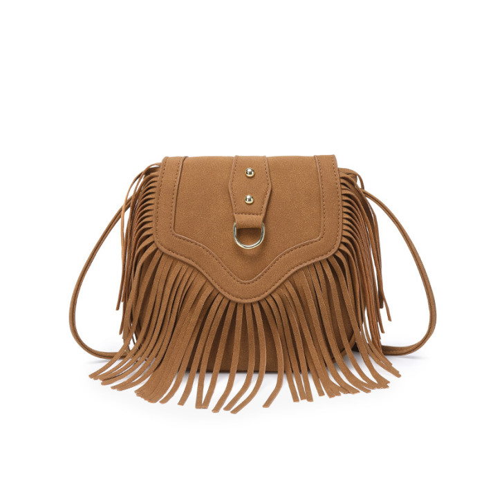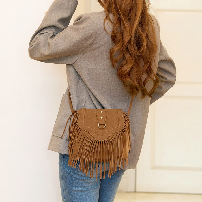 波西米亞流蘇斜後背包歐美復古大容量女士通勤百搭單肩包