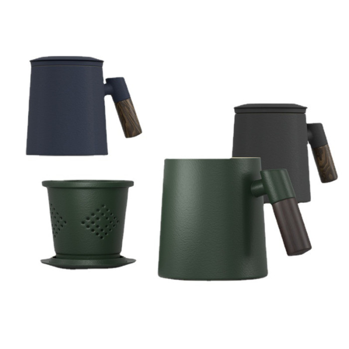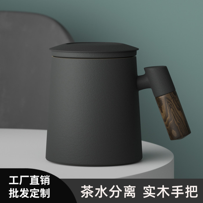 茶水分離陶瓷杯子男士高顔值帶蓋高檔馬克杯復古辦公杯伴手禮