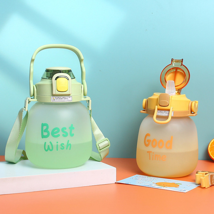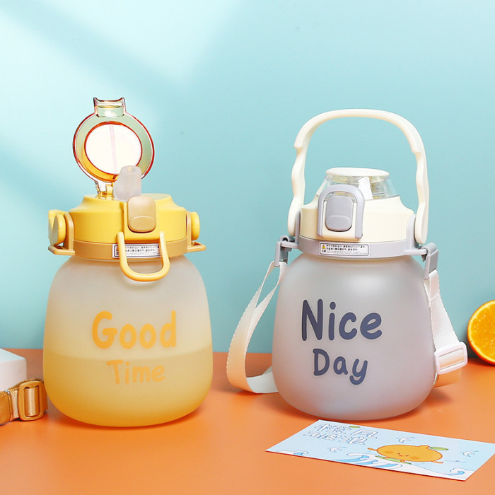 網紅大容量水杯大肚塑膠杯手提背帶吸管杯學生高顔值可攜式水壺