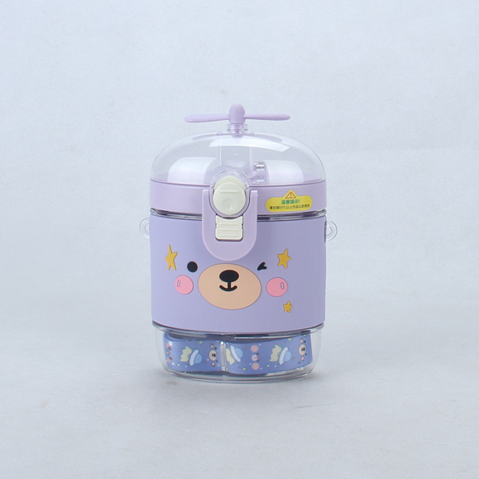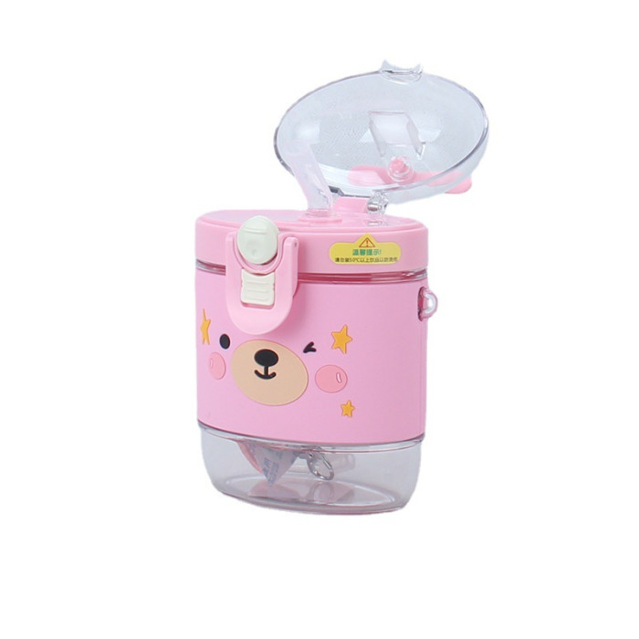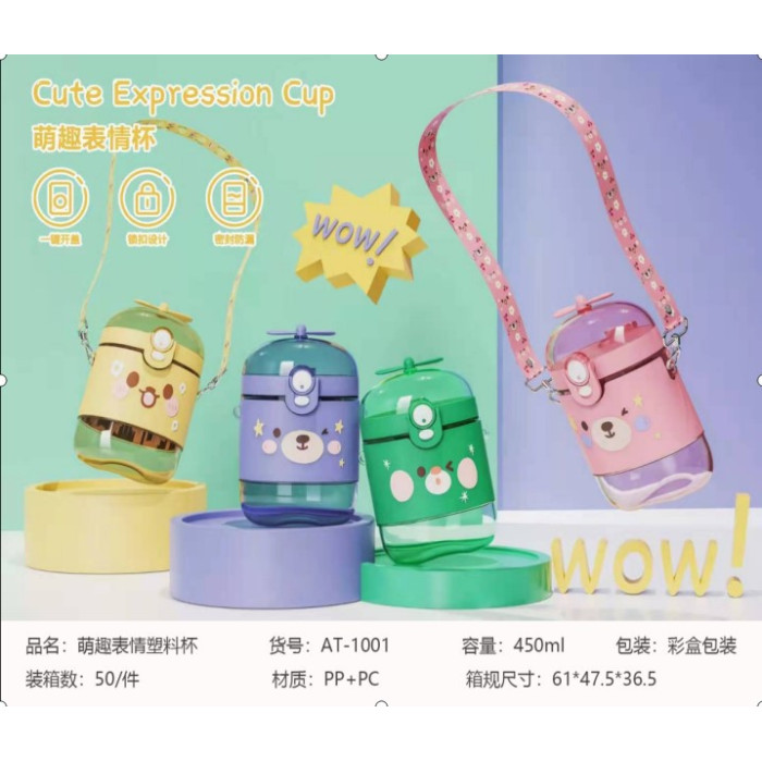 網紅萌趣表情卡通水杯扁扁韓版潮流時尚吸管背帶水壺兒童可愛