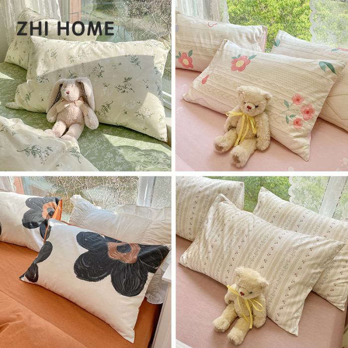 油畫風枕套一對裝純棉2022新款100全棉48cmx74cm枕頭套罩學生宿舍