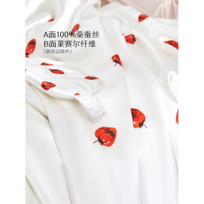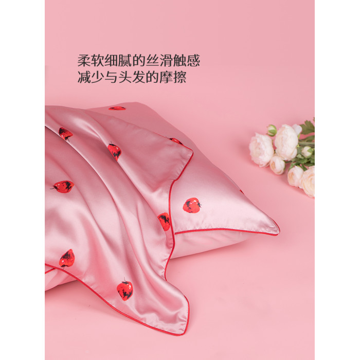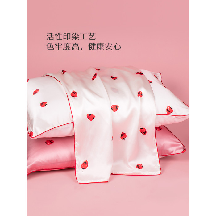 太湖雪真絲草莓枕套桑蠶絲純色印花絲綢枕套枕巾一衹裝