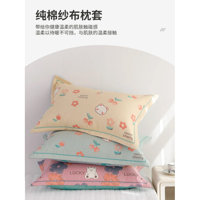 純棉紗布枕套一對裝新款四季通用成人款家用枕芯內膽套全棉枕頭套