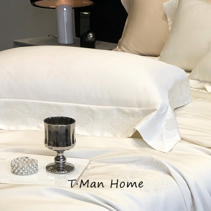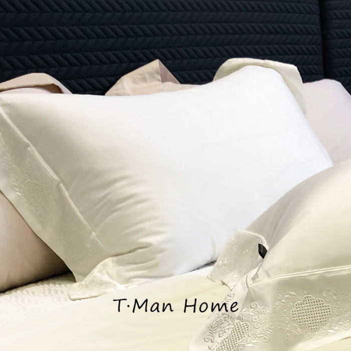歐式100支天絲棉枕套一對鏤空奶白色夏季枕頭套子涼感萊賽爾單人