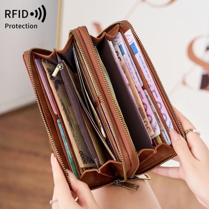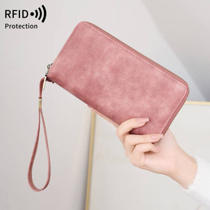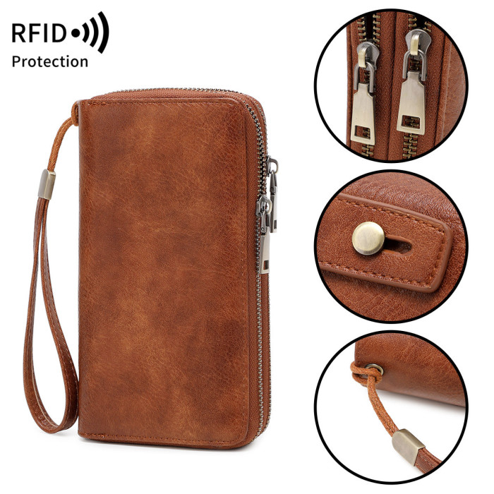 新款商務多卡位錢夾RFID時尚雙拉鍊手拿包大容量女士長錢包