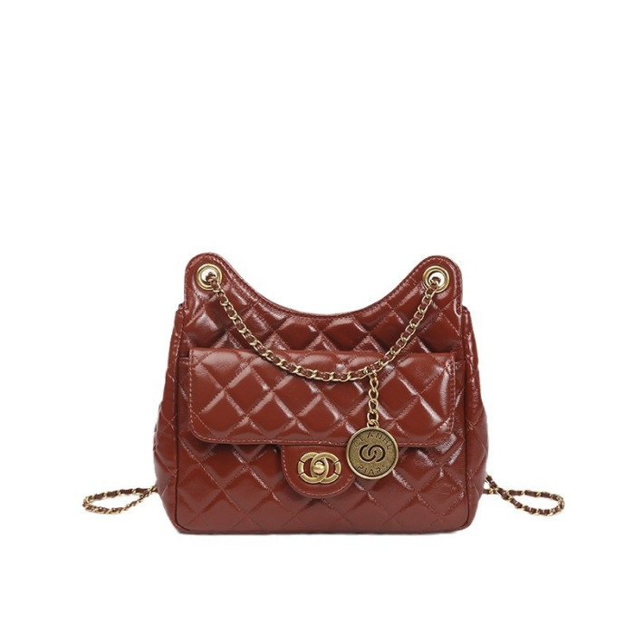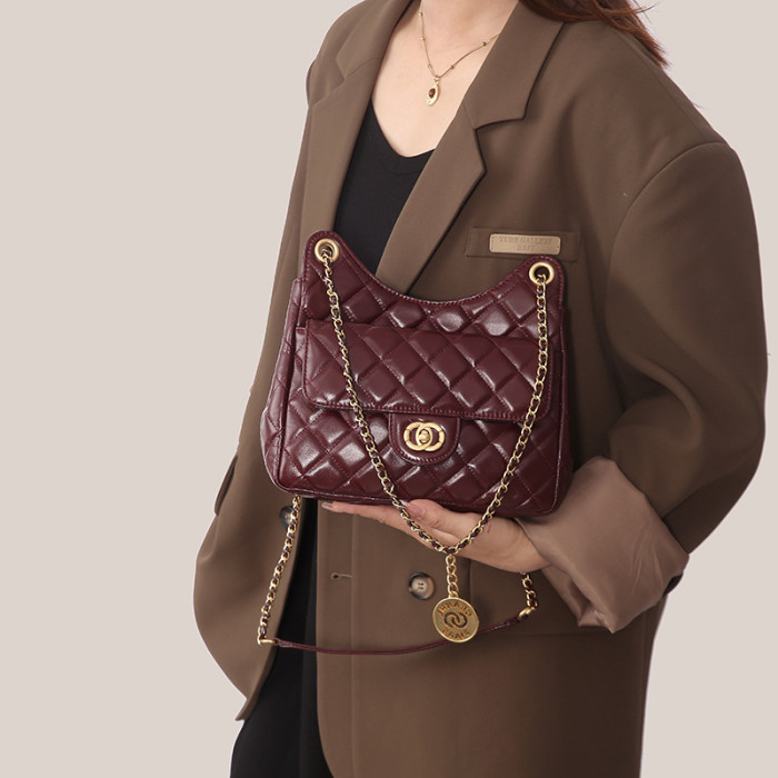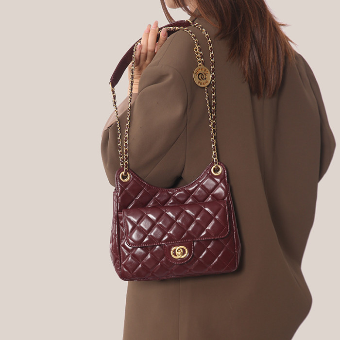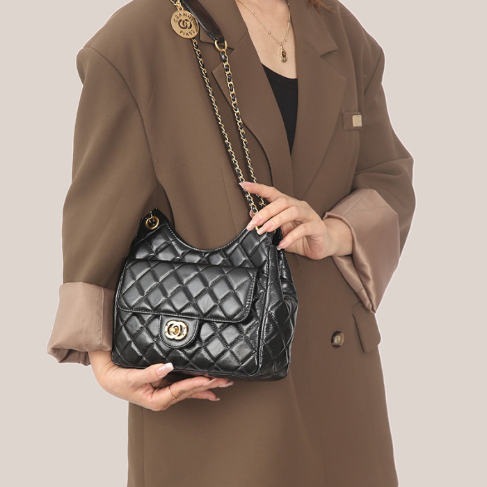 2025新款頭層牛皮女包天貓精靈hobo包小香風菱格鏈條單肩斜後背包