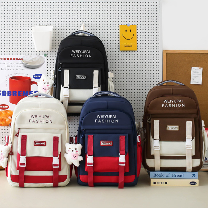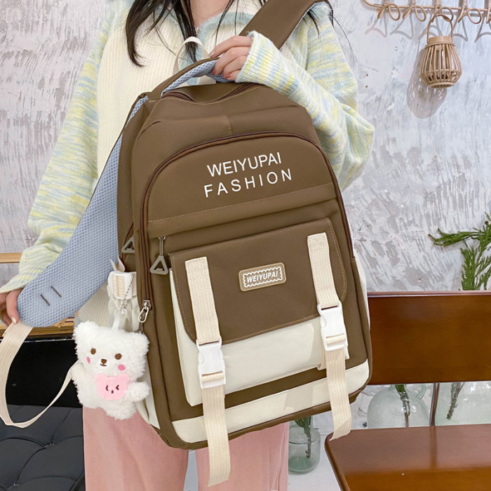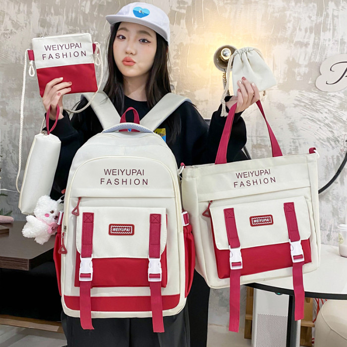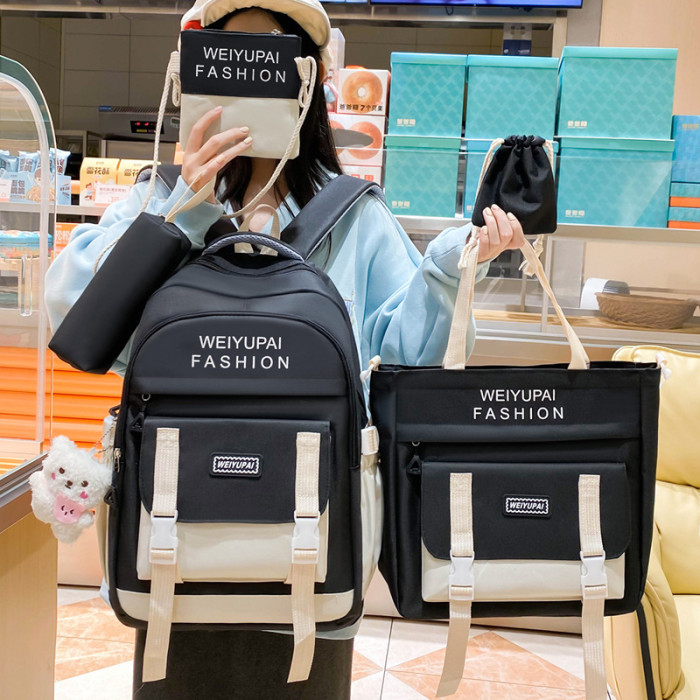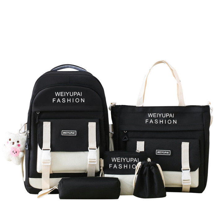 五件套學生書包日系ins小學生撞色雙肩包大容量初高中生後背包