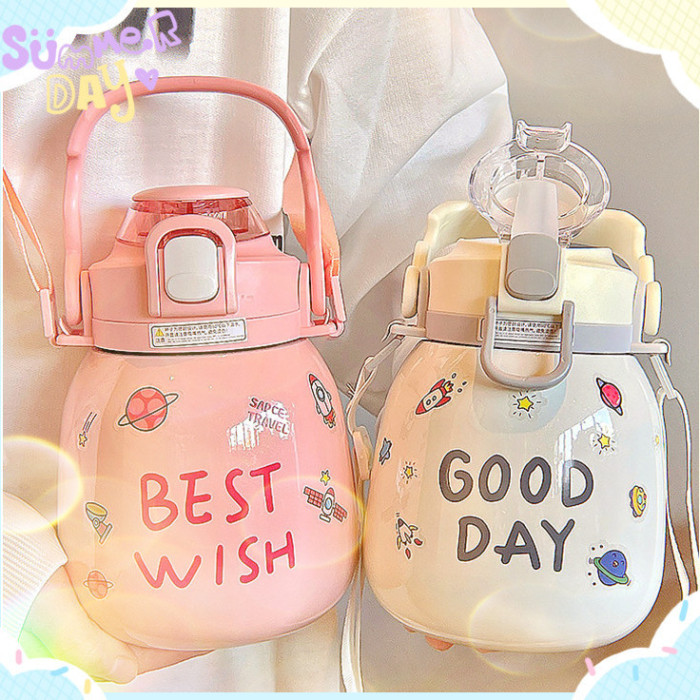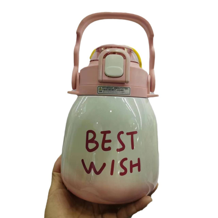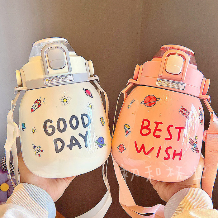 大肚保溫杯女生高顔值ins簡約大容量杯子316不鏽鋼水杯便捷吸管杯