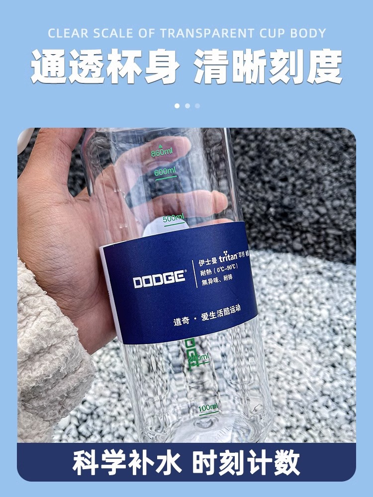 道奇得心隨手杯運動大容量水杯男生簡約學生軍訓可攜式水壺tritan夏